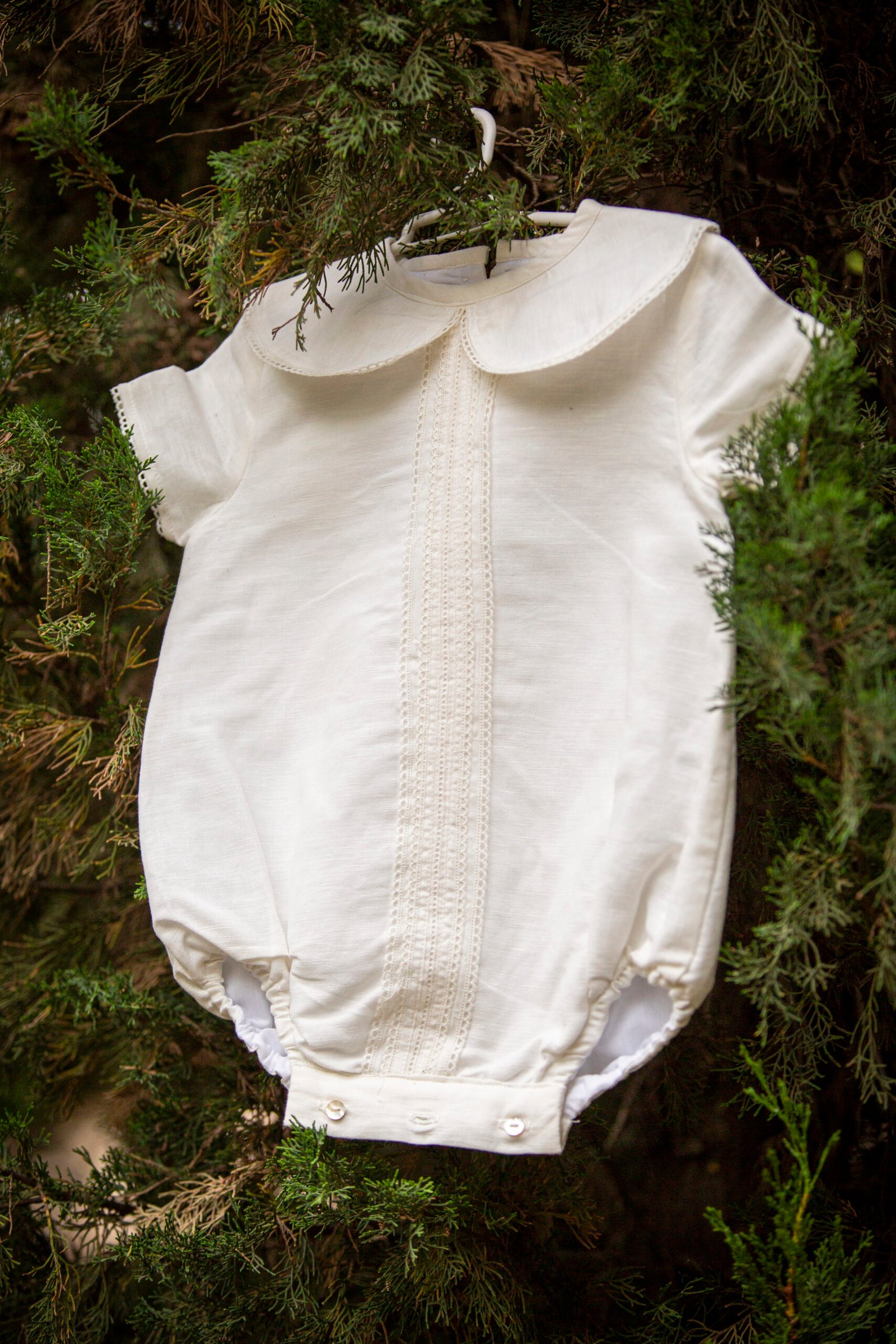 Pelele confeccionado en lino y encaje bordado 6m, 12m ,18m