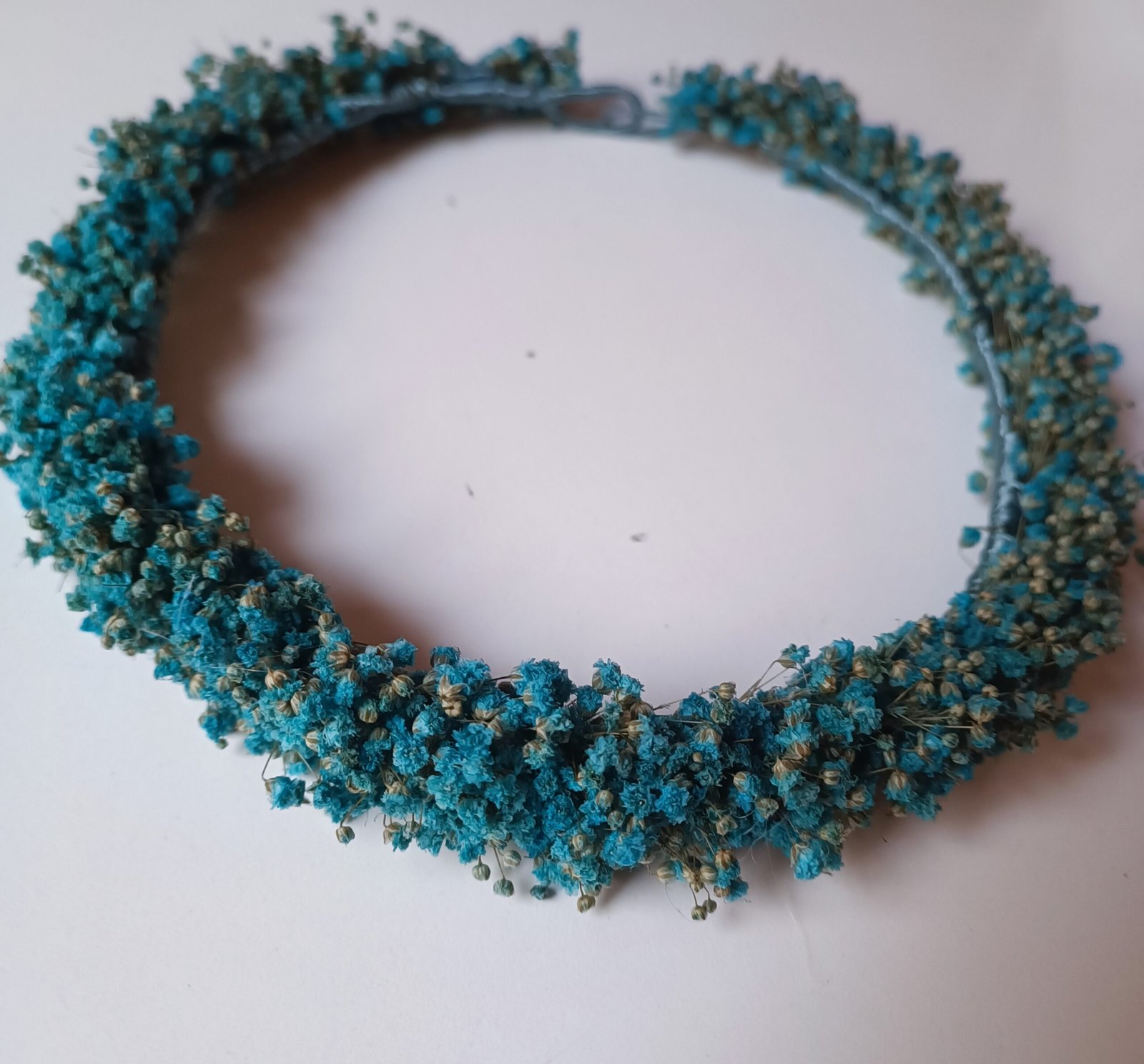 Corona Sara combinada , con paniculata preservada de colores azul , con hilo de seda