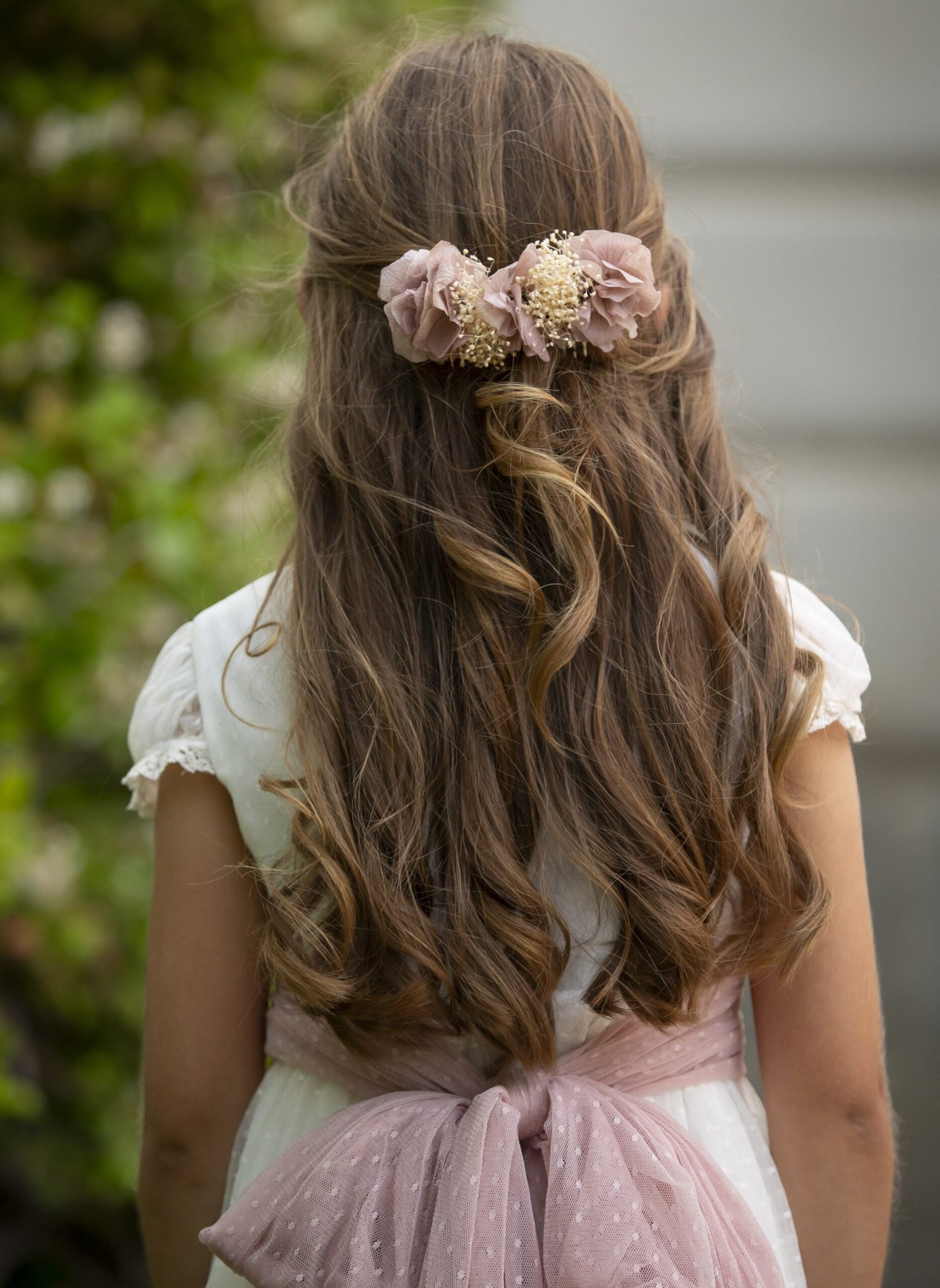 Pasador con hortensias preservadas en mimi hortensias rosa palo y beige medida de 15cm