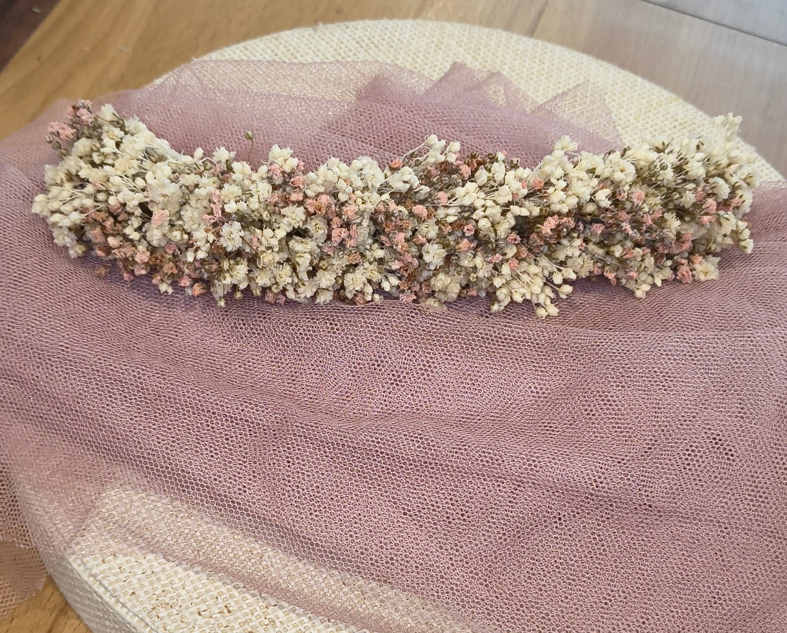 Tocado de paniculata blanco natural y rosa viejo 20 cm