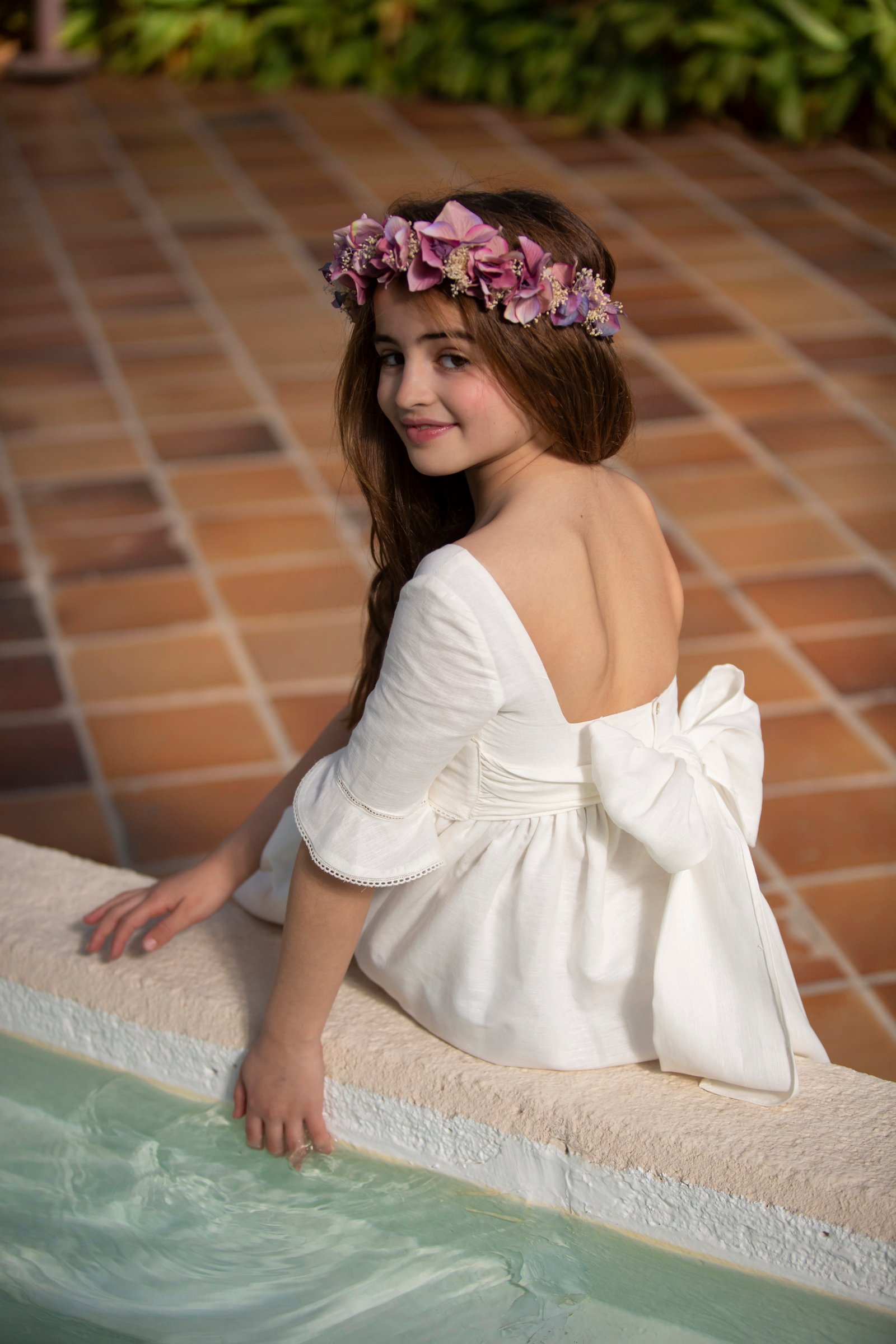 vestido Teresita , confeccionado en lono y una pequeña puntilla bordada en manga y lazada de lino incluida desde t6 a t12